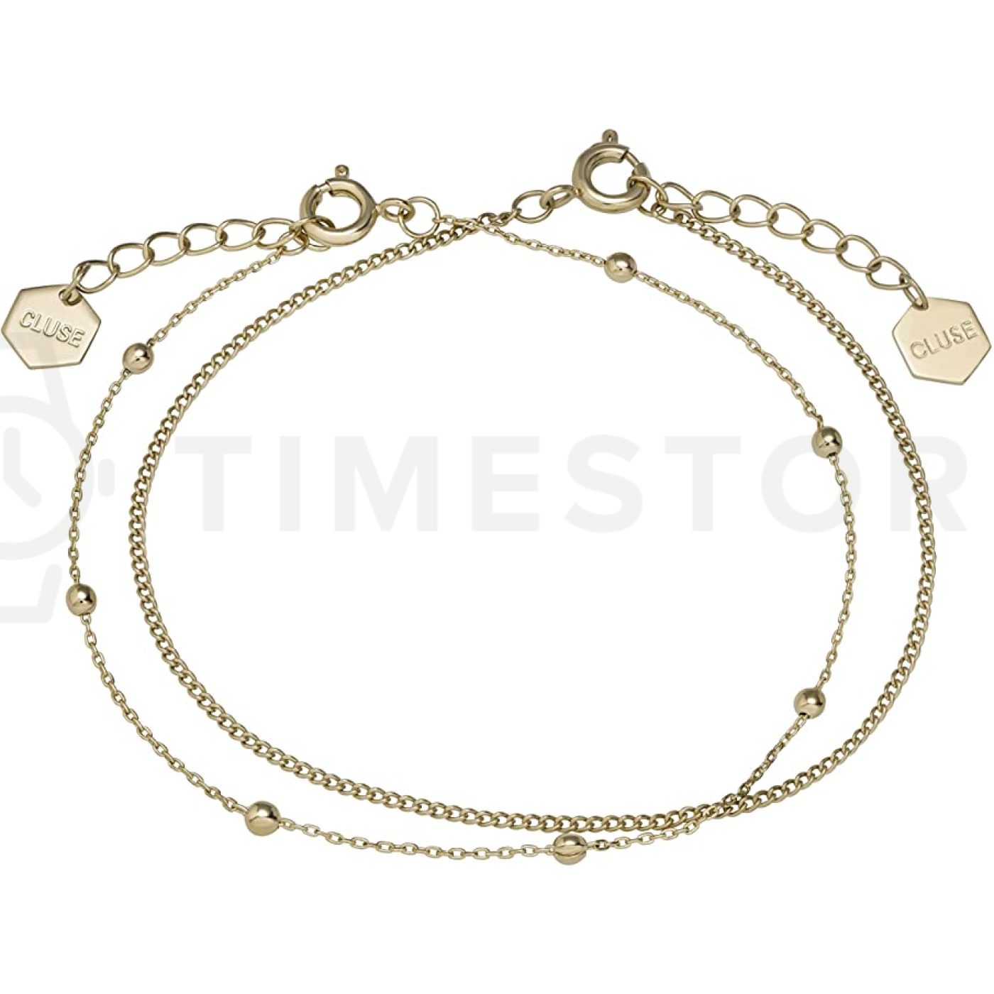 Máte zájem si zaobstarat stylový náramek a zpestřit tak sbírku vašich doplňků? Na obrázku záři model od populární značky Cluse, která je mimořádně oblíbená kvůli nezaměnitelnému stylu a modernímu designu svých produktů. Vybraný model zdobí žádaná zlatá barva a primárním použitým materiálem je obecný kov. V rámci velikosti je náramek dlouhý 150 - 175 mm a jak je možné vidět na obrázku povrch tohoto náramku je kombinovaný. Zbytečně však neztrácejte čas, tento interesantní model od Cluse si vás určitě získá.