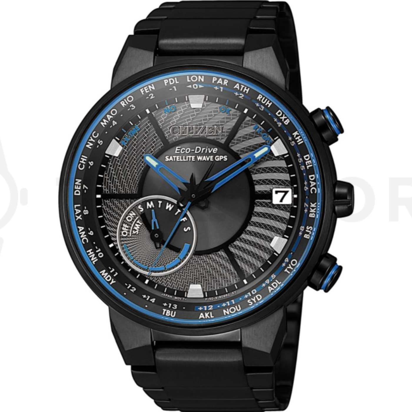 - Rádiově řízené, Chronograph, GPS, Ukazatel dní v týdnu, Indikátor nabití baterie, Světový čas, Věčný kalendář