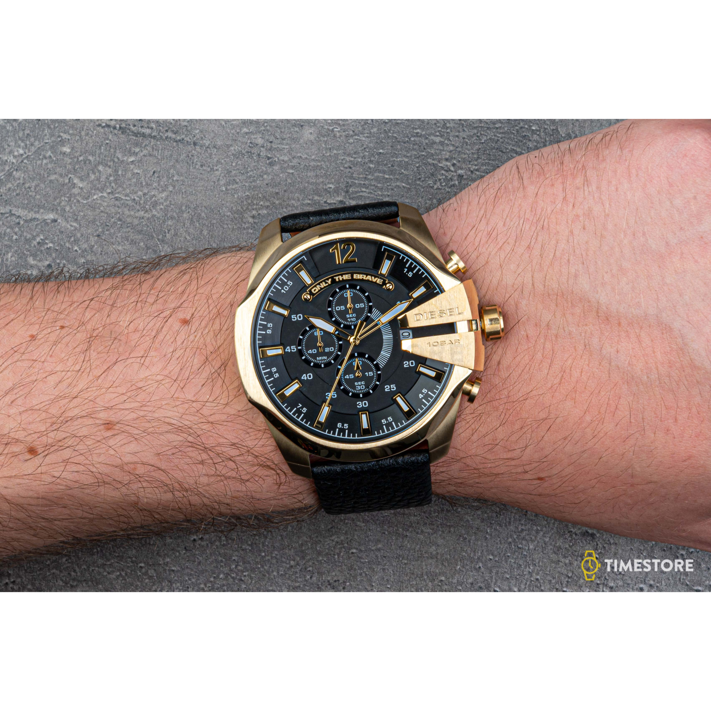 Vymakaný vzhled hodinek, vyráběných značkou Diesel je nemožné nespozorovat. Vyobrazený model s kódem DZ4344 je tím, který má co nabídnout. Pohlédněme ale blíže na charakteristiku vybraných hodinek. Nejviditelnějším prvkem hodinek je rozhodně pouzdro, kterého barva je v případě těchto hodinek zlatá a základním materiálem ocel s PVD povlakem. Použitým materiálem, ze kterého je vyrobený řemínek tohoto modelu je ušlechtilá kůže a ozdobuje ho moderní černá barva. Pokud chcete pěkné hodinky, které se stanou vašim oblíbeným doplňkem, zvolené model je jistě dobrým výběrem.