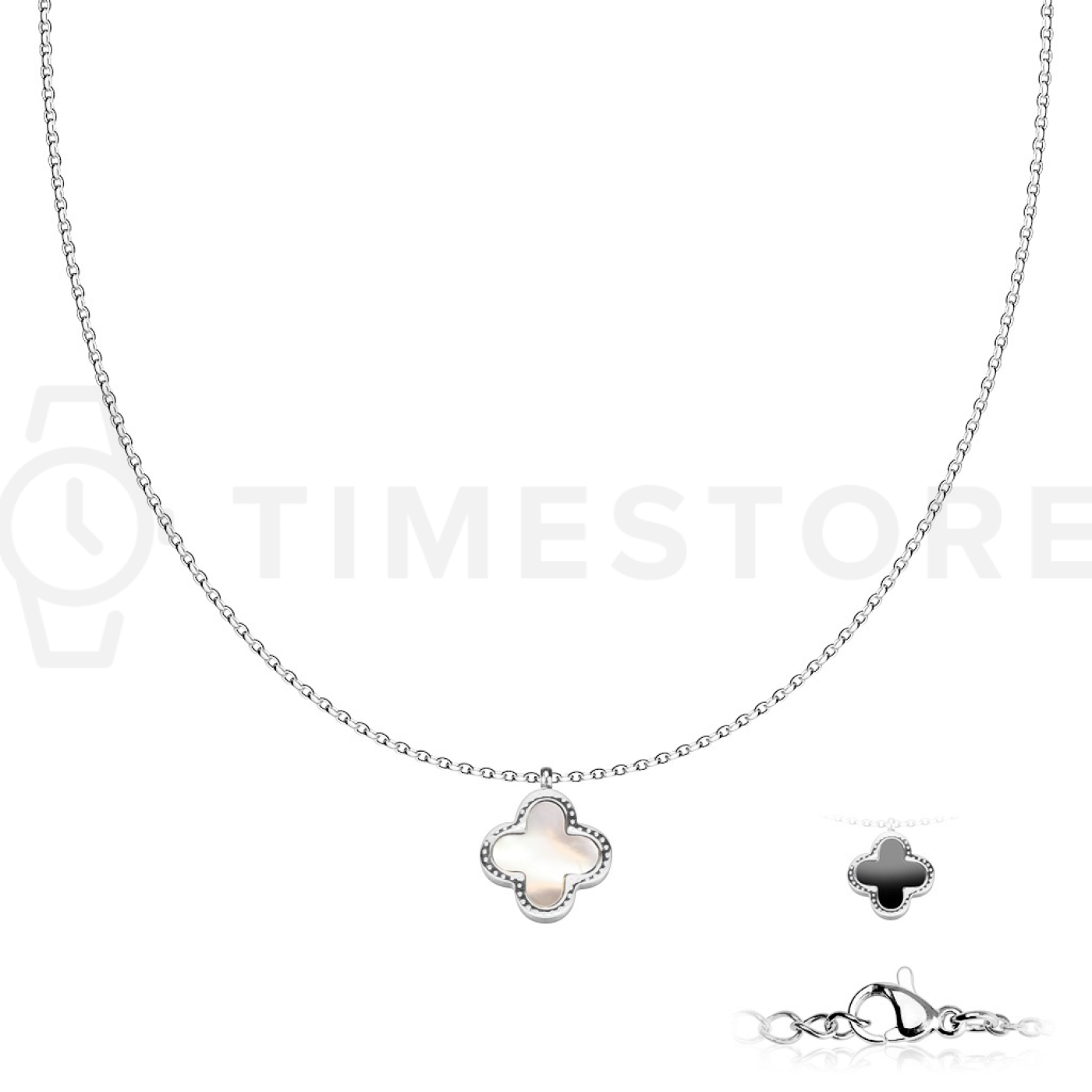 Náhrdelník z chirurgické oceli s oboustranným přívěskem ve tvaru čtyřlístku